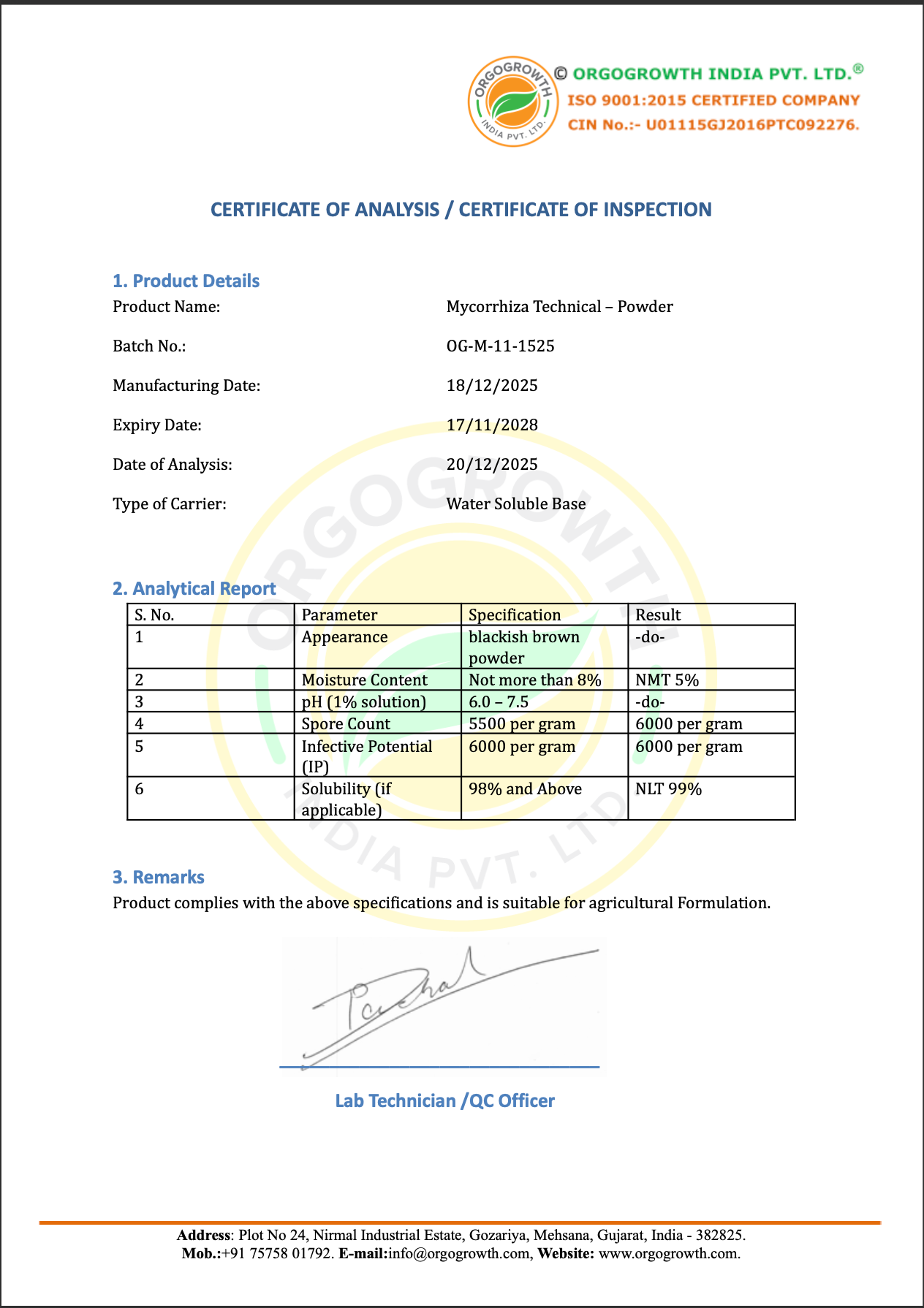 Technical Name: Bio-Fertilizer – Mycorrhiza (VAM) Water Soluble Powder