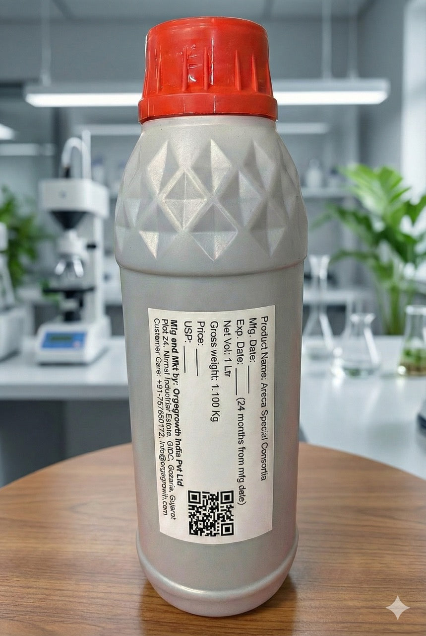 The Areca Special Consortia is a high-potency, multi-strain bio-fertilizer specifically engineered to address the physiological and nutritional challenges of Areca nut (betel nut) plantations. Unlike generic fertilizers, this consortia is a "living shield" that fixes nitrogen, solubilizes phosphorus, and mobilizes potash directly in the rhizosphere (root zone).