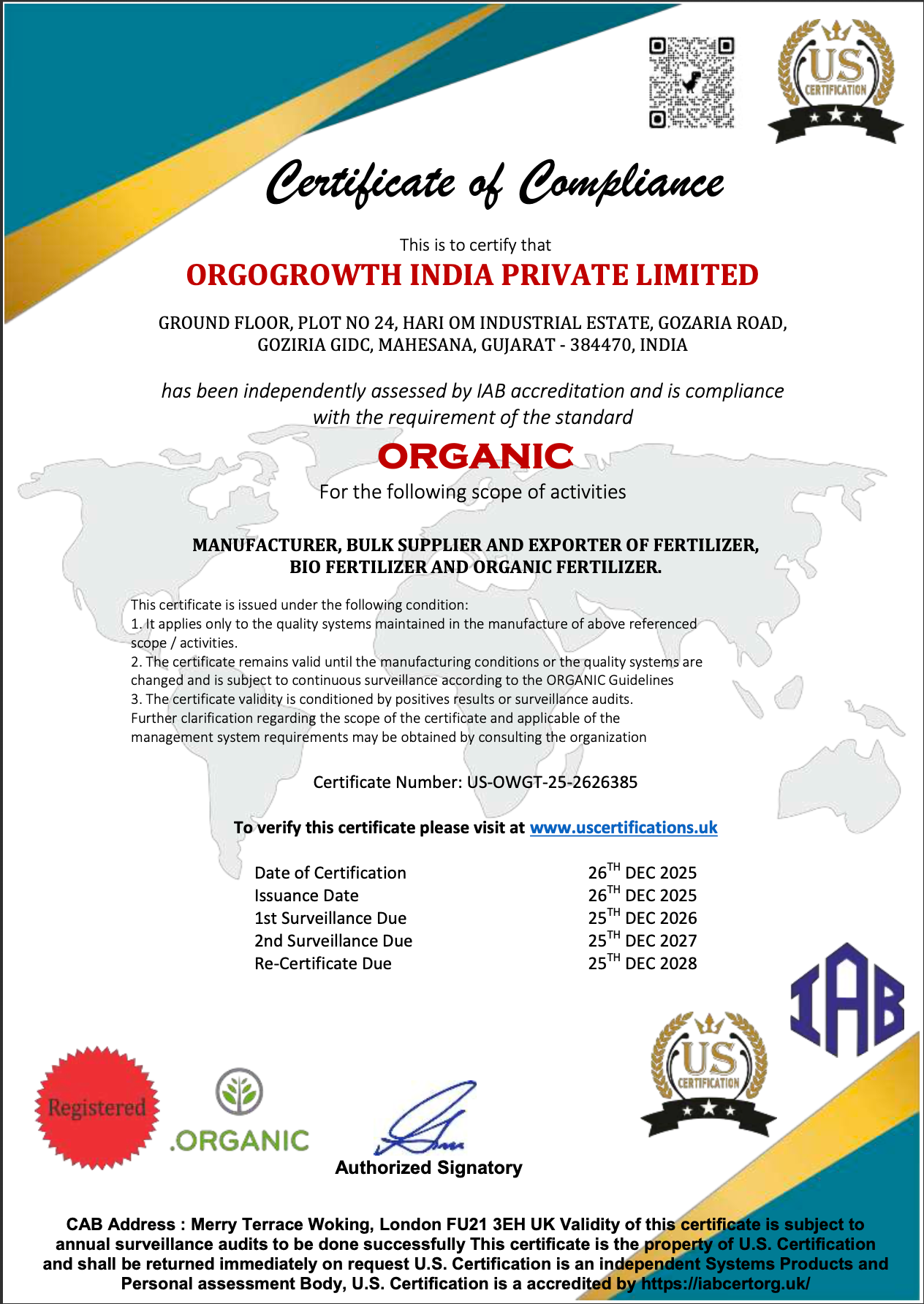 Organic, compatible with Neem cake and well-decomposed FYM |